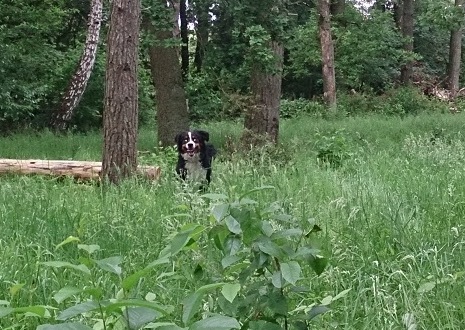 Geliebt und gefürchtet bei den Nachbarn stürzt sie sich mal wild und mal zärtlich an die jeweiligen Besucher am und auf dem Grundstück.